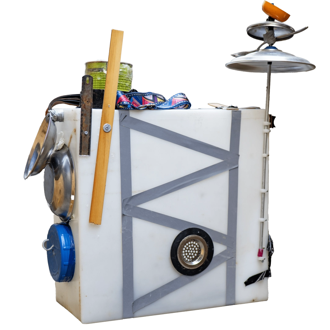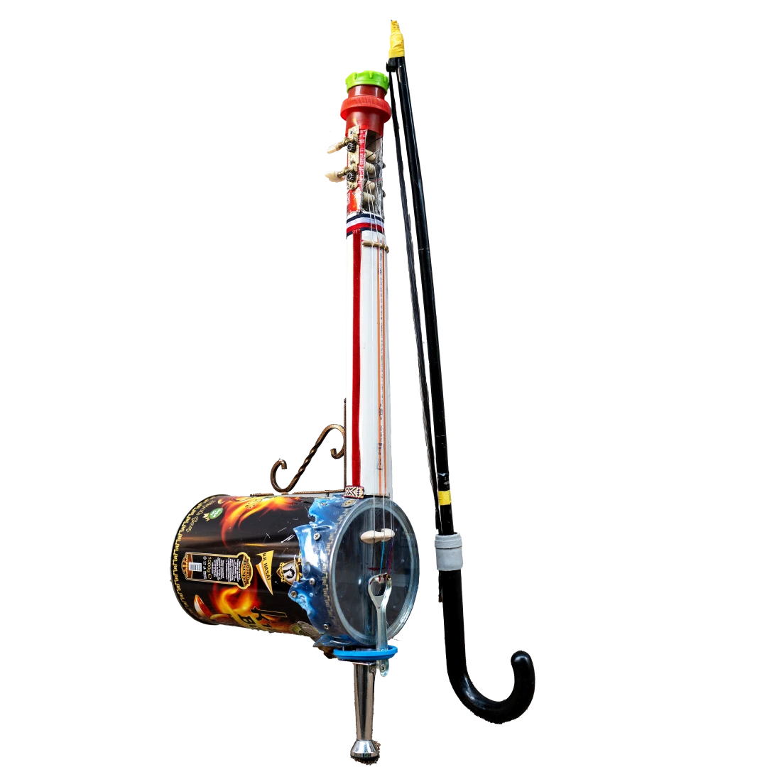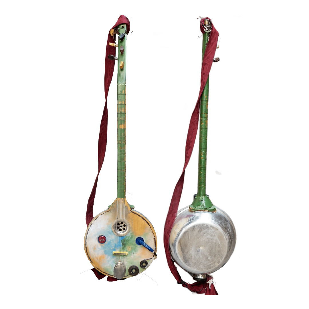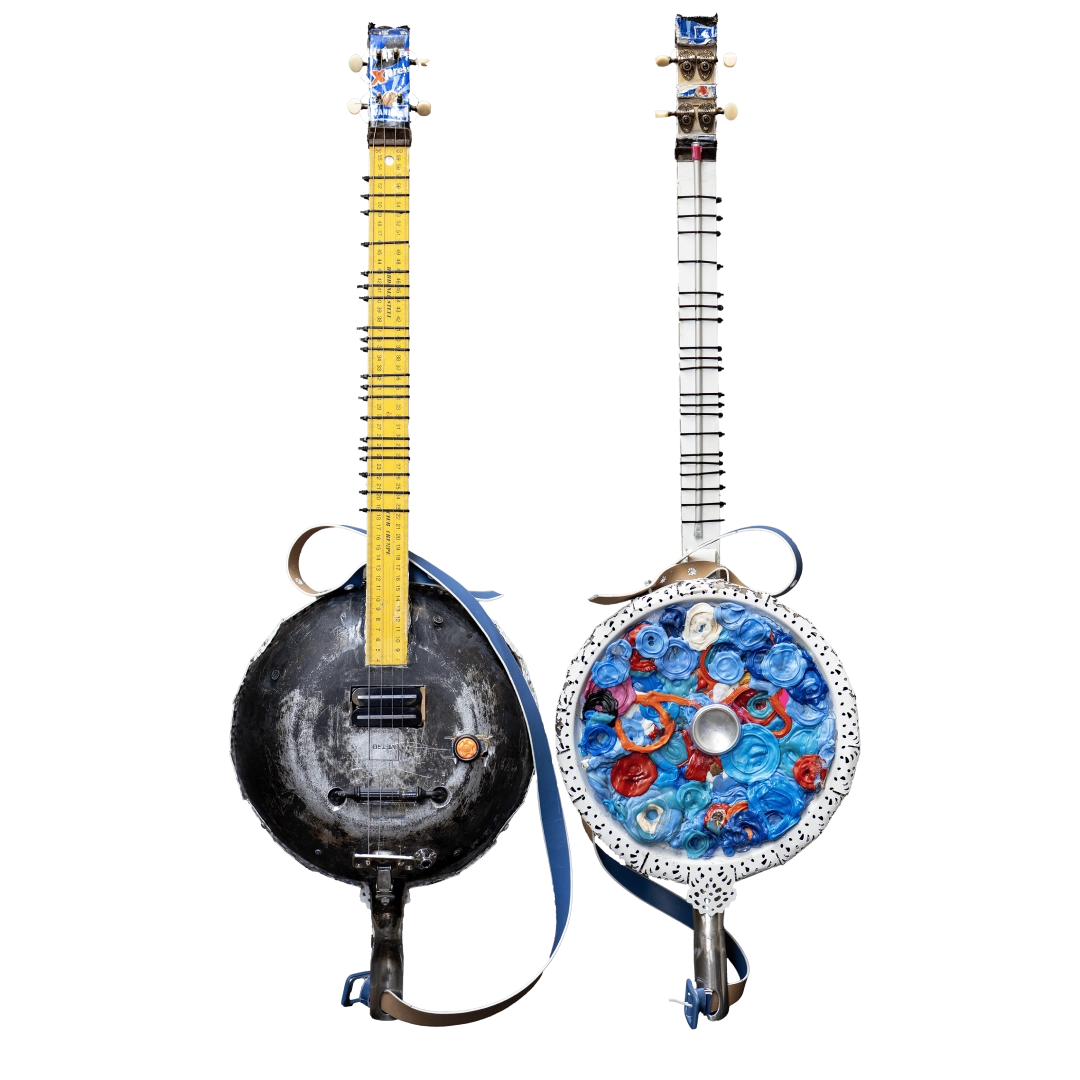 These instruments made from recycled materials are designed and crafted by Roni Aran. During the production process, he sometimes receives support from luthiers and his bandmates.